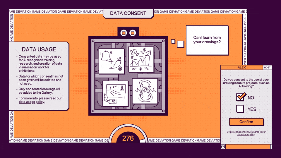 Deviation Game was initially developed as part of the art incubation program at Civic Creative Base Tokyo [CCBT]. Since then, the game has been exhibited globally at events including Ars Electronica (Linz), Now Play This (London) and Day of the Devs (San Francisco). The game has engaged audiences of all ages and sparking critical discussions around AI and creativity. The exhibition version is available via request.